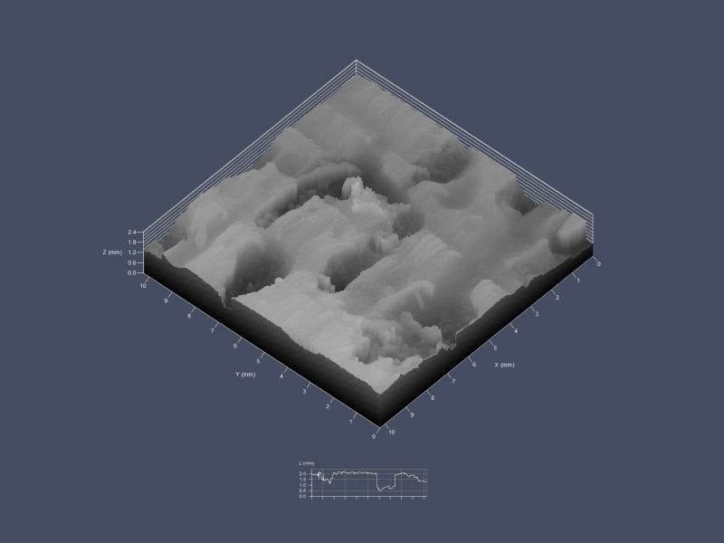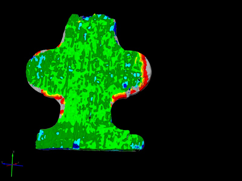 Colour polygon of the depth of damage to the wooden object. The dark blue demonstrates the deepest damage – 3.5 mm