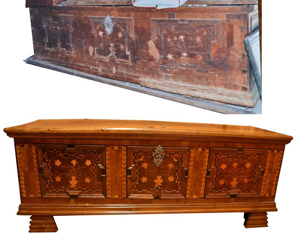 Restauro dello scrigno con intarsio