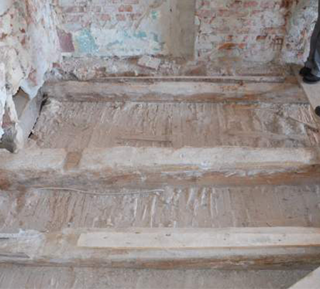 Restauro della gradinata di legno a spirale