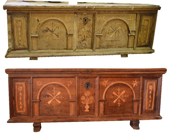 Restavriranje intarzirane skrinje - prej/potem